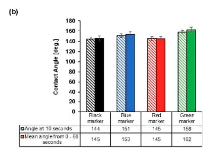 Based on water contact angle, the authors reported the hydrophobic strength order as green marker > blue marker > red marker ≈ black marker.